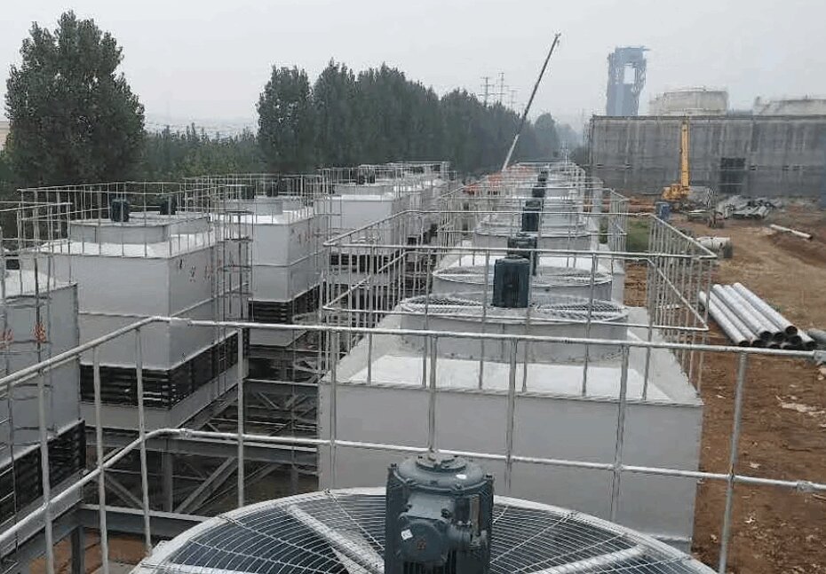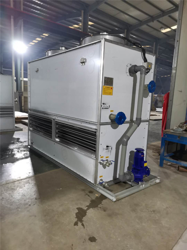 閉式冷卻塔實際上是一種蒸發式冷卻塔,是冷卻塔和濕式冷卻塔的結合.這是一個水平蒸發冷卻塔.過程流體流過管子,空氣流過管子,兩者之間沒有接觸.封閉冷卻塔是傳統冷卻塔的變形和發展.塔底儲層的水由循環泵抽出,輸送到管道外部均勻噴灑.它不是與工藝流體熱水或制冷劑和管外空氣的接觸.它成為一個封閉的冷卻塔,通過噴水提高熱量和傳質效果.
